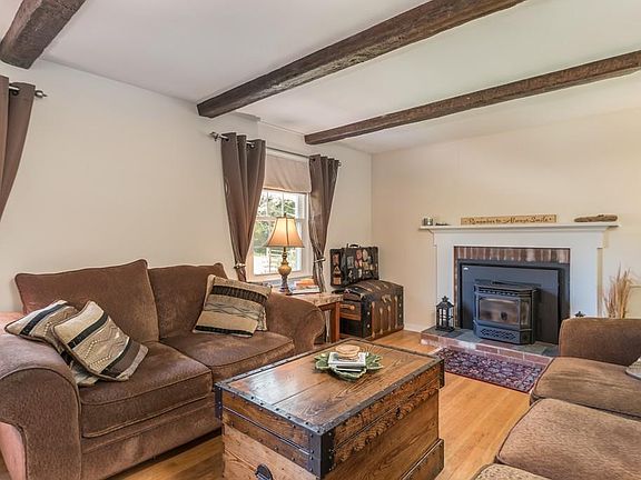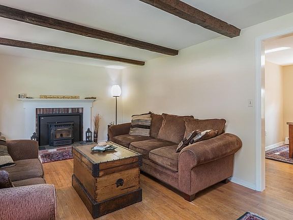 The end of a cul-de-sac is where you will find this great 4 bedroom cape! The first floor features a cozy living room with pellet stove insert in the fireplace, dining room and kitchen with updated appliances. The kitchen opens to a sunken family room with vaulted ceiling, a great space and it opens with sliders to a beautiful maintenance free composite deck, patio and great yard! Two bedrooms on this floor and a full bath and upstairs two more bedrooms with a second full bath. The second floor bedrooms are large with multiple closets and built-in storage. One car garage, unfinished lower level space, a storage shed...but check out that yard!!!