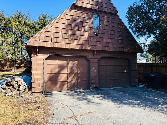 Hot water baseboard heat with multi-zones, plus a heat pump for year-round comfort. A large two-car garage with storage space above.