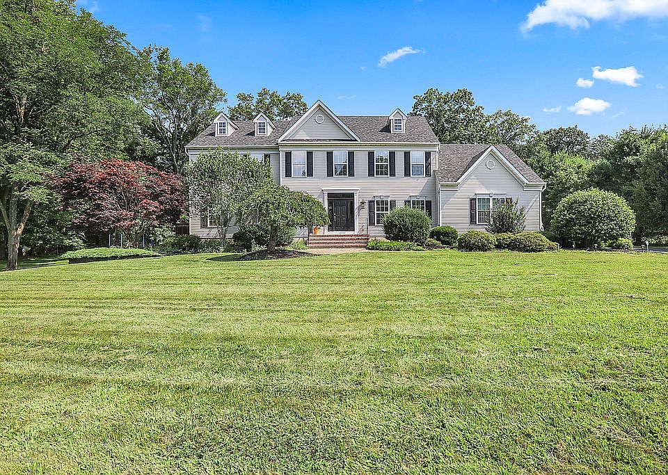 Beautifully appointed and stunning colonial situated on a 1.35 acre cul de sac lot in coveted Colts Neck. This picture perfect home features 5 bedrooms, 3.5 baths, and an updated eat in kitchen with high end chef appliances, granite counters, and a double fireplace connecting to a family room wrapped in windows to let in tons of natural sunlight. Relax on your wrap around deck overlooking the private park-like grounds with plenty of room for a pool. Second floor offers a spacious master bedroom with a huge walk in closet and master bathroom, along with 3 guest bedrooms&full bath. 5th bedroom is located on the first floor adjacent to a full bathroom and laundry room. Partially finished basement w/ a playroom, kitchenette, work area and plenty of extra storage. Blue-Chip School District!