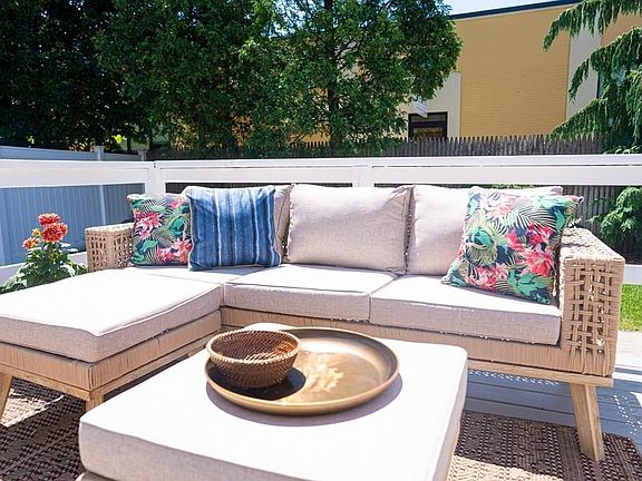 OFFERS DUE TUESDAY AT 6PM. Welcome to the neighborhood of Wellington-Harrington. When you open the door the vast living room draws you in with natural light from the bay window. The semi-open plan provides great flow for entertaining and allows for privacy. Beautiful oak hardwood floors sprawl throughout. Featuring a gourmet kitchen with stainless steel appliances, lacquer cabinets, gorgeous granite countertops and boasts a large island for additional seating and storage. Walk out the custom slider from the dining room onto your large deck to enjoy your morning coffee or hot cocoa under the stars. Custom Bali Roman Shades and Blinds are found throughout the house. Upstairs presents you with the second full bathroom, 2 large bedrooms - 1 of which can accommodate a king bed, a decent sized 3rd bedroom, and the laundry area. This home is perfectly situated to many amenities.TWO-off street parking spots and a private fenced-in landscaped yard completes the list.