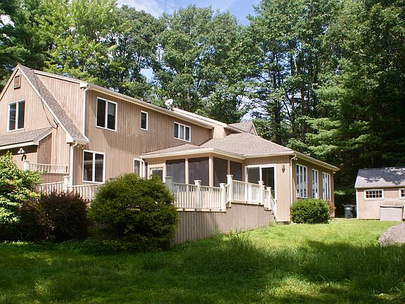 This Woodridge Lake home is located very privately level lot with vacant forest land to the rear. This contemporary/ Cape Code offers elegant country living. All of the rooms are very generous in size, the living room,dining room and family rooms feature beautiful cherry floors. The kitchen, newly renovated features upgraded white cabinetry and stainless steel appliances. All three bathrooms have been upgraded with the finest of materials. The oversized attached two car garage and large detached storage/ tool shed allow for tools or "toys" to be stored without compromising your personal space. This home is truly a must see, whether for a full time home or a weekend retreat. The owners are highly motivated! Enjoy Woodridge Lake and all of it's amenities, walk to Mohawk State Forest for hiking and true country living.