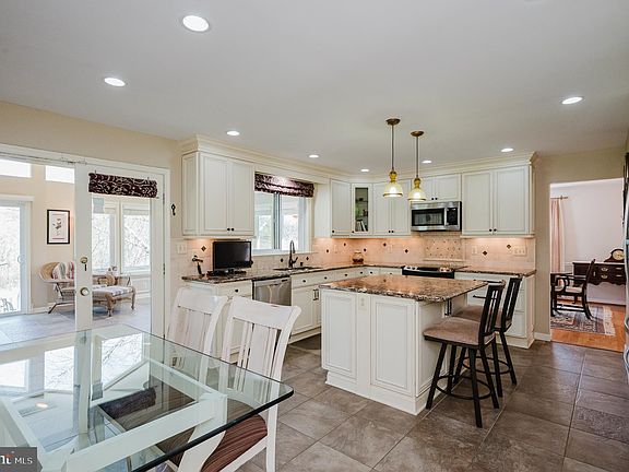 Welcome to this beautifully renovated home that combines modern elegance with natural tranquility! The main level features an inviting eat-in kitchen equipped with stainless steel appliances, a stylish backsplash, and a functional island, perfect for family gatherings. French doors lead to a bright 20x16 sunroom addition boasting a cathedral ceiling and built-in seating, complete with a split system for year-round comfort. Step outside to the fenced rear yard, where you can relax on the 20x12 maintenance-free deck overlooking the lush woods and serene stream. The foyer greets you with hardwood floors, flowing into the spacious living room featuring a cozy wood-burning fireplace. The dining room impresses with its hardwood floors, crown molding, and chair molding, creating an ideal setting for entertaining. Upstairs, the primary bedroom offers a tranquil retreat with crown molding, chair molding, a ceiling fan, and hardwood floors. The en-suite bathroom features a luxurious soaking tub and shower, alongside a generous walk-in closet. Two additional bedrooms with hardwood floors share another full bathroom with a skylight, providing ample natural light. The lower level boasts a cozy yet spacious family room with a gas fireplace, a convenient powder room, and a wet bar, making it perfect for gatherings. A fourth bedroom or office adds versatility to the space. The ground level features a laundry area and additional storage space with a walkout exit to the oversized two-car garage. There is a Generex full house stand by generator included with the sale. This stunning home is a perfect blend of comfort, style, and outdoor beauty—don't miss your chance to make it yours!