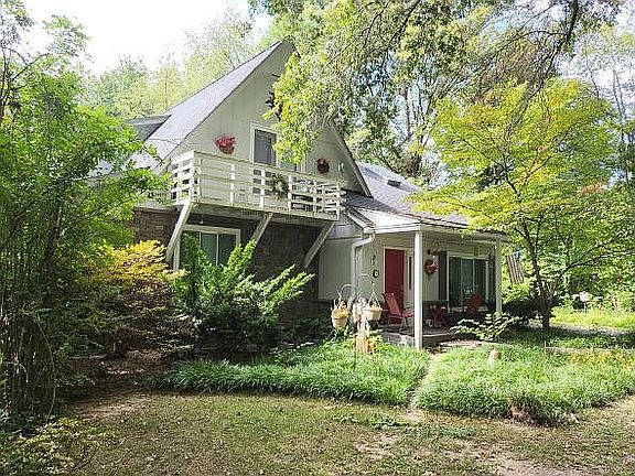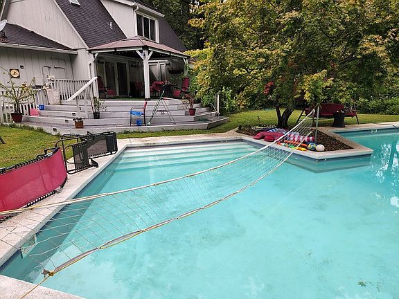 This property truly is a 2 acre private paradise….. a wide open air “oasis”. Aprox. 4,000 Sq. Ft. of living space 2300 sq. ft. in the main house – 3 bedrooms (2 walk-in closets), 2.5 bathrooms, Spacious Kitchen (w/Pantry), Dining Room (12 seats)/TV Lounge), open Living room w/fireplace, office and reading/music area at the top of the stairs. Poolside kitchen & Bath both exit to a 14.5”x19’ wooden deck w/ 12’x12’ metal roof gazebo (w/ solar lights). Plus fiber optic internet … wireless reaches almost entire property. 1600 sq. ft. in the pool/guest house (open space with 17 ft. ceiling) with 12’ wet bar, 16ft back bar, 10’x10’ full kitchen/dishwasher, 11’x13’ Dining area, 17’x21’ recreation/party area). Plus, enclosed 12’x15’ office/BR/whatever room, full bath w/shower, and open upstairs loft bedroom 20’x20’. Poolside deck 33’x8’. Woods side rear exit - small deck and stairs. Gunite Pool ….. U-nique-shape each side appox 14’x22’ 6’ depth w’/an 8’ transition to 2.5’-3.5’ side. “no-salt” heated pool with stainless steel walls. Pool floor angles up to a 12” ledge 2.5 ft below waterline around entire Deep and transition area. Having two sides -- makes it perfect for floating on deep side and kid play (or in our case water volleyball) on the shallow side. The grounds -- “Woodsy”, “Fairway” and ”Tranquil” Many tall mature trees lining fence line and other clumped areas with natural hedges providing near complete privacy. Pathways through wooded areas. Completely fenced for dogs. ** Option -- Can be sold with (inside & outside) furnishings and lawn/garden equipment).