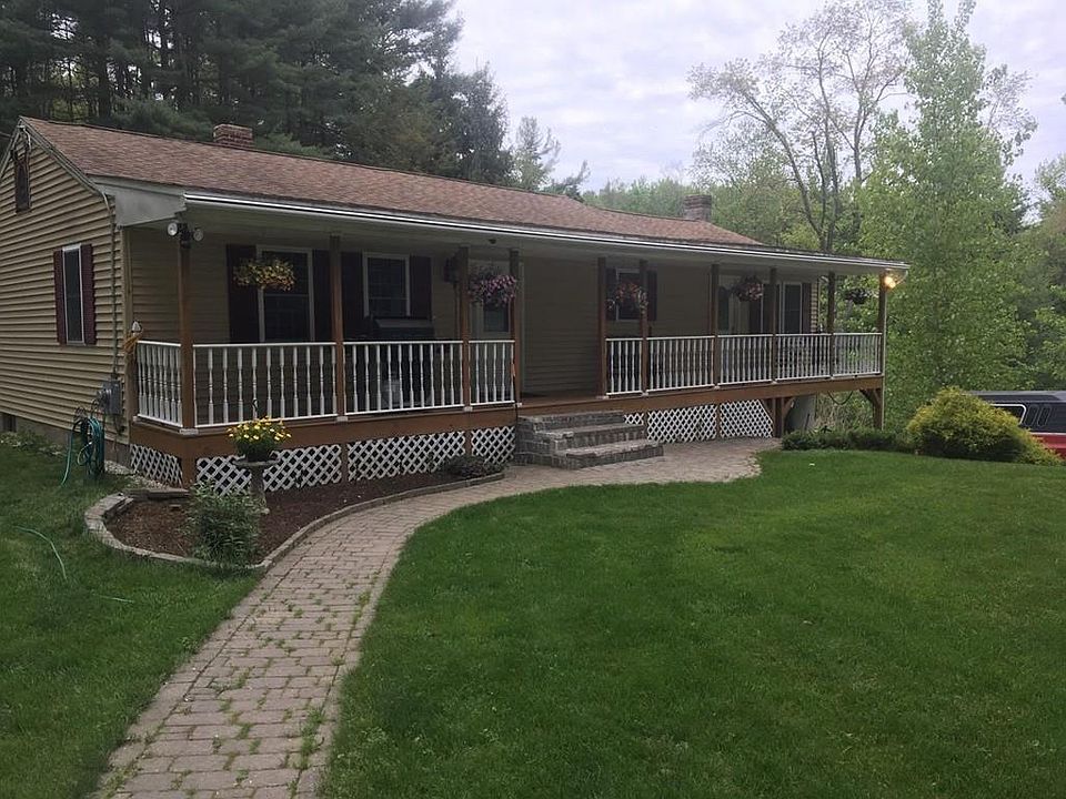 This three bedroom Ranch is located at the end of a dead end street. Sit out on your front porch and enjoy the privacy of 3 acres. Remodeled bathroom offers whirlpool kinetic tub and custom tile work. Living room has cathedral ceiling and slider to backyard, ready for you to add a deck. Pantry off kitchen provides plenty of extra storage. All new Leafguard gutters have lifetime warranty. Newer stainless steel appliances in kitchen included. Multi use furnace set up for either wood, coal or oil. You will delight in the one level living and privacy this home offers.
