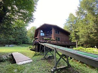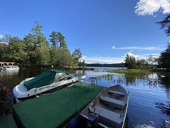 Architechurally unique 4 season Adirondack style Lodge located on private County Line Island on Big Tupper Lake featuring 5+ acres and a spectacular sandy swim beach area. The interior of the home boasts a vaulted Great Room with handsome round log beam accents and floor to ceiling granite stone fireplace, custom Kitchen with one-of-a-kind wood countertops and cabinetry, and a sizeable Dining Room adjacent to an over-sized outdoor deck ideal for entertaining and enjoying the lake and mountain views. Enjoy your morning coffee on the second floor deck positioned privately off the second floor mezzanine. A carefully crafted floor plan features an indoor wood storage room adjacent to the Great Room, a full basement with plenty of storage space and a double door walk out, and a super functional snail rail system that extends directly from your lakeside dock all the way to your main level deck, allowing for all your household goods to be delivered to your door effortlessly! A MUST SEE!!