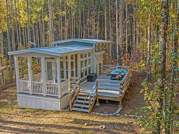 Discover this beautifully furnished tiny home, nestled in a private wooded setting. Featuring a main level bedroom and bath, plus an additional loft sleeping area. the spacious deck invites you to unwind in the hot tub or you can relax by the firepit. Already an established income producing property, this retreat is an ideal investment or weekend getaway. Home is being sold COMPLETELY FURNISHED including hot tub!