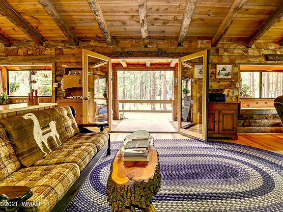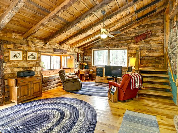 This, authentic, rustic log cabin nestled in tall pines and white fir at over 8000' has the feel of a hunting lodge from a different time. The unique property is D log construction with massive stone walls, an expansive great room with pine floors, and vaulted ceilings. Multiple fireplaces and ETS heaters are perfect for chilly nights. Oversized bedrooms and an upstairs loft provides sleeping for up to twelve. Sit on the deck, watch the wildlife, entertain friends or enjoy the peace and quiet of the beautiful White Mountains of Arizona. Minutes from USFS where you can hike, hunt or fish and an easy drive to Sunrise Ski Resort.HOA is voluntary, $15 annually.$350 annual water assessment by Alpine Highlands Water Company.