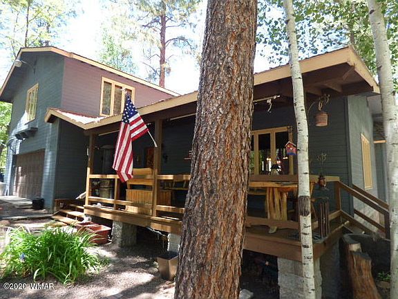 Attention Golfers and Lovers of Mountain Retreats! A rare opportunity to own an exquisite home on the 5th Tee Box of the Alpine Country Club. Remarkable home, 3 master suites, large open living room, extensive 18' travertine breakfast bar seats family & guests. Expansive kitchen, commercial Wolf 6 burner stove, breakfast nook overlooks 5th Tee Box. Impressive wood plank flooring, tile and carpet. 800 sq.ft. entertainment deck both covered and open for comfort. Landscaped yard in pine and aspen cover. A 2 car garage completes this desirable home tucked back into the quiet recess of trees wherein the deer & the elk roam. Sellers require 24 hour notice to show home. Items that do not convey include the Deer Antler Chandelier, washer & dryer, and cabinets in garage, and personal items