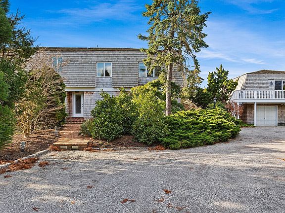 This property is all about location and privacy yet just blocks from beaches, shops and restaurants. It's a water lovers dream with a ROW to a community dock on Quantuck Bay only steps from the house. The layout is perfect for accommodating a large family and entertaining many guests. The open living room has 2 seating areas with fireplace as well as casual dining. The huge kitchen features a living/dining area as well as beautiful polished stone floors...truly the heart of the home. A spacious en suite main bedroom with balcony and 3 large guest bedrooms with 2 baths complete the second floor. The gunite pool with slate surround and the 2 car garage with studio en suite above are wonderful additions to the property. This home, in this much sought after and secluded location, is perfect for summer or year round living.
