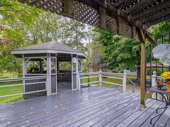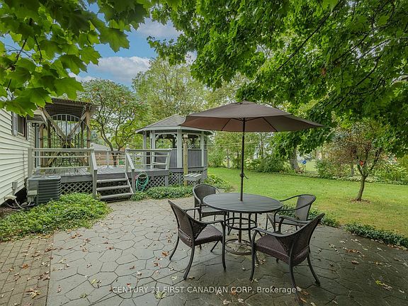 Welcome to 7 Currie Court, Poplar Hill, a charming all-brick bungalow built in 1966 and offering a spacious main floor living space with a fully finished lower level. This well-maintained home features 3+1 bedrooms, a one-car attached garage, and sits on a beautiful large lot. The main floor boasts hardwood flooring throughout, a spacious living room with a new window and front door, and a wood fireplace. The primary bedroom offers a double closet, and the updated kitchen includes a 1-year-old dishwasher, gas stove, fridge, newer countertops, and laminate flooring. The four-piece bathroom has been refreshed with a newer counter, sink and toilet. The lower level includes a laundry area, newer carpet on the stairs, newer flooring throughout, a 3-piece bathroom with granite countertops and a shower, a family room with a closet and woodstove, a workshop, and a bedroom. Additional updates include newer windows in the family room and bathroom, a newer sand-point well, pressure tank, rental water softener, and water heater. The home also features central air (5 years old), a roof (approx. 10 years old), newer sand point well (2023) and a 100-amp electrical panel. Outside, enjoy a gazebo with a new roof, pergola, stamped concrete patio, and a newer shed, all set in a spacious, well-kept backyard. The single-car garage offers plenty of space with a long, high layout and an insulated garage door. Located in a desirable area just minutes from London, this solid brick bungalow is perfect for those seeking a serene environment with modern updates, excellent value, and a wide market appeal.Execulink fibre internet.