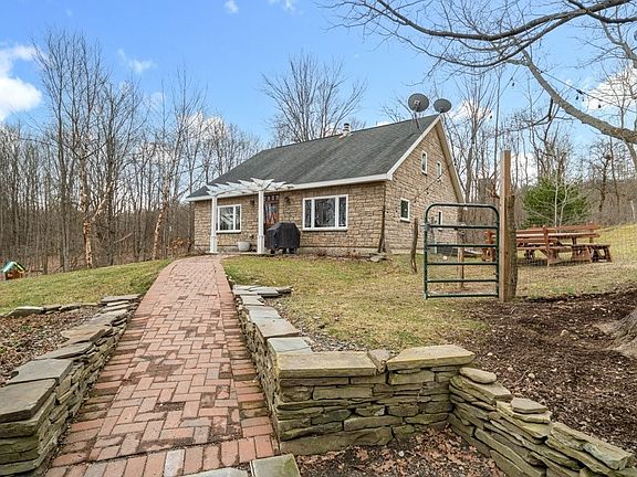 Located just 10 minutes from Downtown Ithaca, this wonderful private home sits on a sprawling 6.5-acre property. The versatile open floor plan allows natural light to flood the living spaces, creating a warm and inviting atmosphere. Enjoy your mornings in the scenic sunroom or relax on the porch that overlooks the entire property. The fenced-in front yard and garden, complete with fruit trees, add to the charm, while the gentle sound of the stream flowing through the acreage provides a serene backdrop. This home offers a perfect blend of tranquility and convenience.