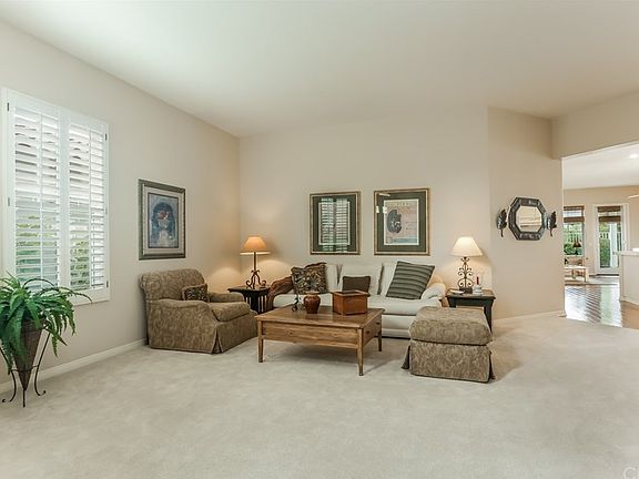 Discover the beauty of Coto De Caza living in this Single Level Montecito Home! The Summerland models were designed as the largest single level homes available within the Montecito tract. The private courtyard of 7 Dartmouth is landscaped with gravel, a stone path, and beautiful plants. As soon as you step through the doors, you'll notice the open layout and high ceilings creating a spacious feel to the home. The living room and dining room areas have plenty of space for entertaining and custom plantation shutters dress majority of the double pane windows throughout the home. The peninsula kitchen has white cabinets, white tile counter tops, a pantry, and lots of counter top space. Tucked in its own room you have side by side washer and dryer. The nook and family room have Maple Garrison II Co Collection hardwood flooring, ample number of windows bringing in great natural lighting, a gas fireplace, and bamboo shades. The Master Suite has a built-in entertainment center, storage, and walk-in closet. In the Master Bathroom you have a double vanity, shower stall, and bathtub. On the opposite side of the home you have the two other rooms, one of which is currently being utilized as an office with built-in shelving. The 2 car attached garage has plenty of storage space and is lined with an epoxy flooring. In the backyard, enjoy beautiful flowers that bloom in season, an orange tree, and lemon tree. A built-in gas grill and a roll out awning provide a great space for entertainment.