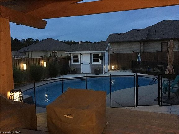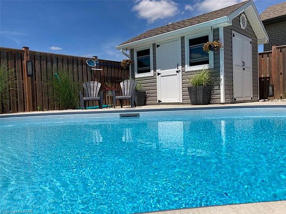 Awesome Opportunity! This Beautiful Corner Lot 4 Bedrooms Home Features A Well-Designed Open Concept Main Floor With Access To A Beautiful Oversized Covered Porch Overlooking The Heated Saltwater Pool. The Main Floor And Den With High Ceilings And Plenty Of Sunlight, A Great Room With A Gas Fireplace, Kitchen With Quartz Countertops And A Big Pantry. Located In Komoka One Of The Most Desirable Community On The Edge Of London