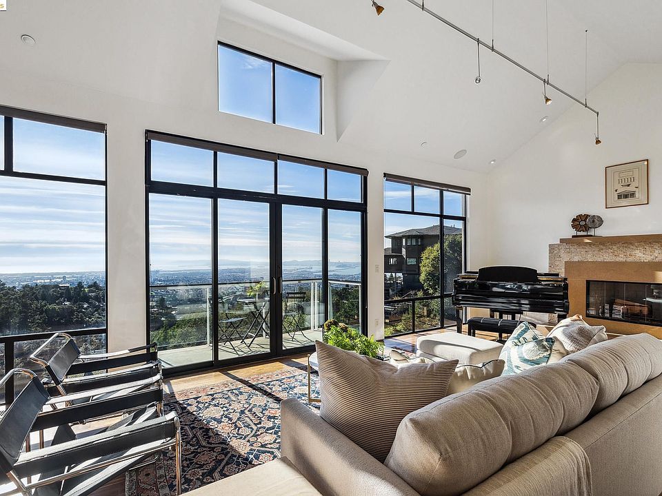 Architectural Masterpiece by Philip Perkins with commanding Bay Views from every room except the movie theatre! High ceilings, amazing kitchen/ family room opening to private, level garden, 5 bedrooms and 5.5 baths, including spectacular primary suite opening to hot tub balcony, and many additional spaces including separate guest house, garage parking for 4-cars, all on a quiet cul-de-sac developed in 2006! An absolute WOW!