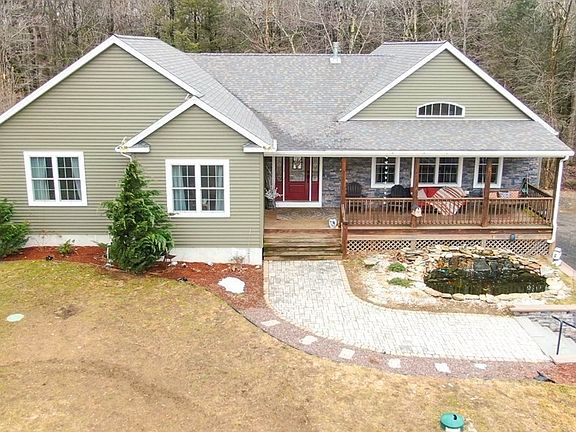 Multiple offers, best and final by end of day today 4/9/2023!Welcome to your dream home! First time ever on the market, this 8-year-old custom-built ranch in Spencer is a rare find. Step inside a modern and inviting living room & kitchen w/ cathedral ceilings & propane fireplace, perfect for entertaining. The kitchen boasts granite countertops, slow-close cabinets, roll-out drawers, large pantry, and an automatic dustpan. Three spacious bedrooms include a master suite w/ walk-in closet, stunning bathroom that has a soaking tub and shower. Central air and propane heat keep the home cozy year-round. You'll also find a sprawling 1.24-acre lot w/ ample off-street parking, including 5 garage spaces, 4 of which are heated and has a quick connect air compressor system. Unfinished basement has 10' ceilings. The intricate stonework, freshwater koi pond, and quaint front porch add to the home's charm.