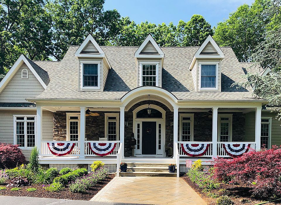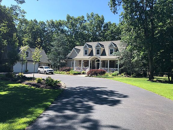 Two-story stone and sided Cape Cod with 2 car garage (2 story) and separate single car garage.