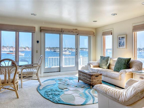 "Volunteer", a waterfront cottage on Goat Island's Defenders Row. This free-standing, 2 bed, 2 bath condo sits directly on Newport Harbor. Providing spectacular views, this 1039sf cottage awaits its new owner. The first floor offers an open kitchen/living area, full bath with laundry, and a large deck perched directly over the water with unparalleled views of the harbor and downtown Newport. The second floor has two bedrooms, a full bath, and another deck. Other features include an outdoor patio and two private parking spaces. Enjoy a single-family home with the ease of condo living, including gated 24 hr. security, an outdoor pool, and tennis courts.