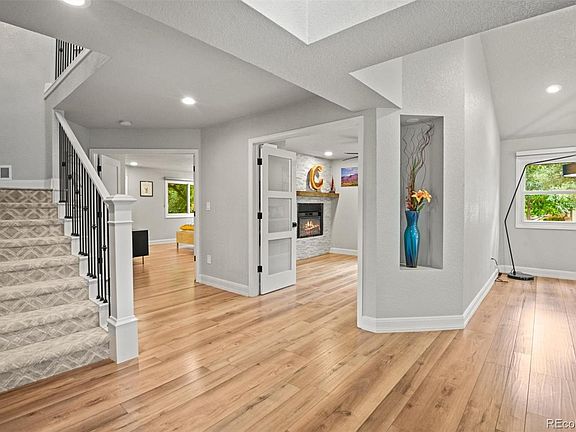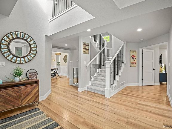 Beautifully remodeled 4-bedroom, 4-bathroom home in the heart of Ken-Caryl Valley. Tucked away in a cul-de-sac with only 4 homes, this recently remodeled gem blends modern updates with farmhouse charm. Throughout the main level, you'll find beautiful hardwood floors and vaulted ceilings that create an open, airy atmosphere. Remodeled kitchen features new cabinets, Miele Steam Oven, Blue Star Chefs range, a large butcher block island, newer stainless-steel appliances including a gas range and access to the outdoor kitchen. Main floor office and a main floor primary suite that is a true sanctuary, complete with a luxurious 5-piece bath, steam shower, and a spacious walk-in closet.
