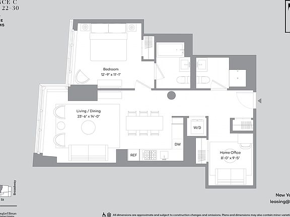 Spacious 1 bedroom + home office and 2 baths apartment with ample amount of natural light.