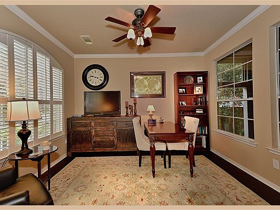 Amazing 5 bedroom home on a cul-de-sac in Alden Bridge! New roof 2013, Plantation shutters, extensive tile & hardwood floors, crown moulding, art niches & built-ins throughout. Open concept kitchen w/SS appliances, double oven & breakfast bar opens to sunny breakfast nook & den w/cozy fireplace; study w/French doors; elegant formal dining; spacious gameroom up; private, fenced yard w/sparkling pool (replastered 2016) w/new heater & spa surrounded by mature trees; oversized 3 car garage.