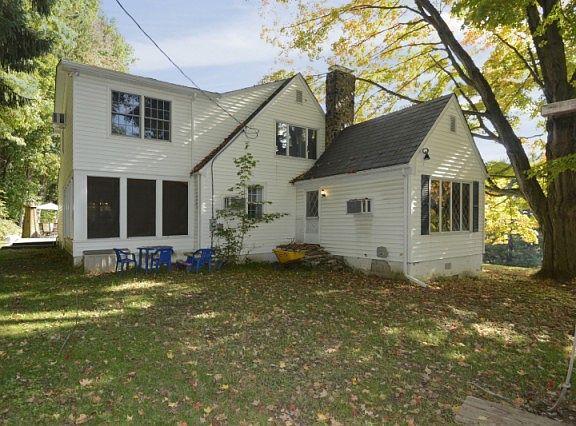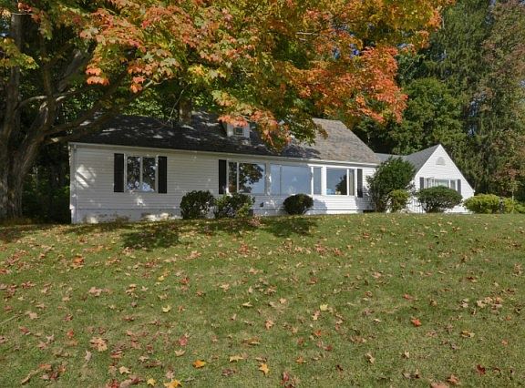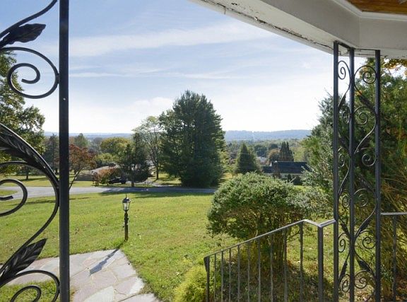 Charming 4 Bed 3 1/2 Bath Cape Cod sitting atop a hill with magnificent views of the mountains. Home features an over-sized LR with a wall of windows viewing the mountains. Wood burning field stone fire place adds to the charm of LR. Magnificent library w/ built-ins, charming accent lights and separate entrance. Kitchen with breakfast nook, Formal DR w/ built-ins. Large family room (great room) Master suite features large walk-in closet, beautiful bath w/ jetted tub, separate shower. Beds 2-4 above average in size. 2 FB on 2nd floor, 1 on 1st and 1/2 in basement. Basement has built in dry bar, laundry room, storage and access to 2 car garage. Timeless slate roof. Large out building for storage. all this on 2.3 acres of park like grounds, walking trails on property. Hardwood under ALL Carpets.