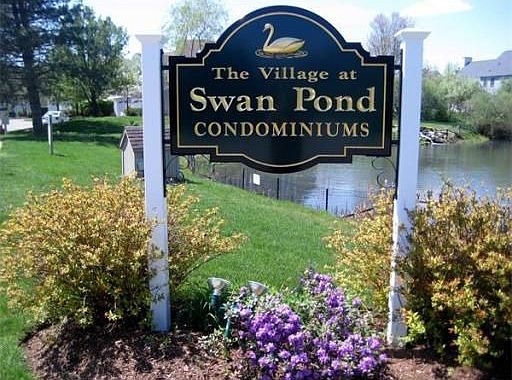 Meticulous end unit in desireable Village at Swan Pond! This unit features 2 BR with additional loft area and 2.5BA. Spacious floor plan with open kitchen, dining room and fireplaced living room with sliders to patio overlooking the pond. Master suite and guest bedroom has cathedral ceilings with custom quarter moon windows. 2nd floor laundry and attached garage with remote opener. Association includes two pools, tennis courts and a club house. Walking distance to T Station and town center.