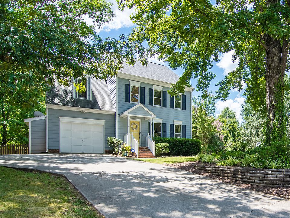 Absolutely gorgeous home perfectly situated on a secluded, wooded, cul-de-sac lot. Expansive back deck overlooking a large, private backyard. Spacious master bedroom with en suite master bath & a private screened-in porch. Third floor bonus room or bedroom. Beautiful kitchen with an island & breakfast nook. Well cared for home featuring new HVAC downstairs in 2016, new AC upstairs in 2016, & new water heater in 2016. Under 20 minutes to vibrant downtown Durham, Duke, & UNC. Pool included in HOA fees.