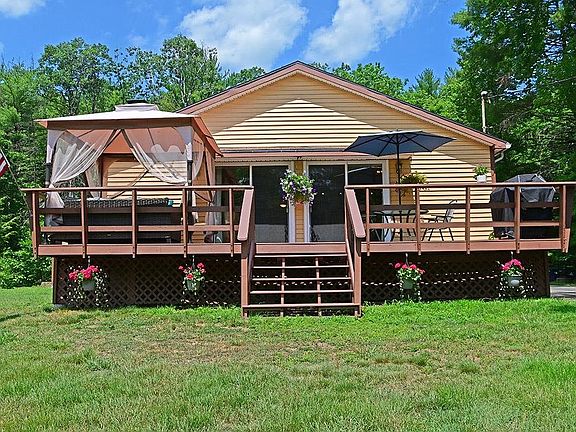 Delayed Showings to begin Sunday 9-12 on the 4th of July. Schedule your showing through Showingtime. A rare double lot with deeded beach/water rights to Silver Lake -just a stone's throw from your doorsteps of this meticulous and pristine home. This one level, year-round home has 3 bedrooms and 1 full bath, outstanding wood flooring, LL laundry, workshop, full basement (partially finished with storage aplenty and 2+ car garage with add'l storage to boot! This ranch bungalow style is gracefully updated for 2021 with some nicely maintained original 1960s flair sprinkled throughout. The real brick hearth wood fireplace is centered to enjoy from all living areas on those cooler fall and winter evenings. The expanded deck is ready for summer BBQ as you relax or play about the level yard and greenspace. The 2-car garage with separate artist studio/ she-shed/ workshop/office makes the home a versatile and perfect abode! Silver Lake beckons your attention and invites you to boat, fish, kayak, or swim as you desire. Come begin your life at the Lakes Region and enjoy the commuter friendly location too! Close to Tanger Outlets, restaurants, shopping and more! Open House Sunday July 4th 9-11:30 a.m.