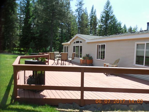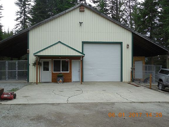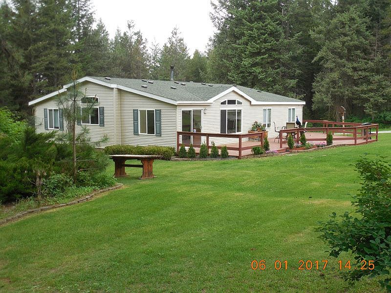 Very private and secluded almost 10 acres. Truly a beautiful property with large sunny yard surrounded by lots of trees. Forest Service on one side and Timber company on back. 1997 Triple Wide, 1960 s.f. Landscaped and very large deck. Divided shop with dog grooming facility, kennels and loft, as well as lg parking area. Carport/hayshed for extra parking. Storage shed. New roof 2016. New dishwasher today. $2000 Carpet allowance for LR and Bedrooms. Vacant and move in ready! 2 wood stoves, 1 house 1 shop