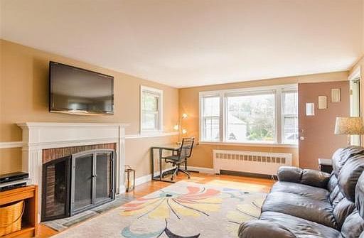 Beautiful three-bedroom Cape located on dead-end street in great location. This home offers a spacious open floor plan, updated kitchen with stainless steel appliances, formal dining room, fireplaced living room, and modern bath. Features ductless a/c system, ceiling fans, skylights, and gleaming hardwood floors. Direct-entry garage and off-street parking. Close to major routes, commuter rail, shops, and restaurants.