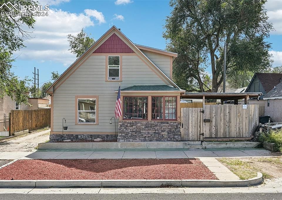 A charming home nestled in the heart of Colorado Springs. Ideal for those seeking a cozy retreat, this home is just steps from the vibrant downtown area and offers easy access to the stunning mountains. Step inside to discover a spacious eat-in kitchen, fully equipped with chef-quality appliances. The inviting living area featuring exposed brick from the original coal-fired furnace, and a spiral staircase leading to a versatile upper-level bedroom or office space. The primary bedroom upstairs offers ample closet space and privacy, creating a serene escape. Modern updates throughout seamlessly blend with the home’s historic character, while the large front foyer and enclosed front porch are perfect spots to relax. The covered patio extends your outdoor living space, ideal for unwinding or entertaining guests. This home’s prime location offers the convenience of walking to downtown Colorado Springs, where you’ll find a lively scene filled with restaurants, breweries, and entertainment. It’s also just moments from Weidner Field, perfect for enjoying concerts and soccer games. Don’t miss your opportunity to own a piece of Colorado Springs’ revitalized south downtown area while embracing the unique, vintage layout and breathtaking mountain views.
