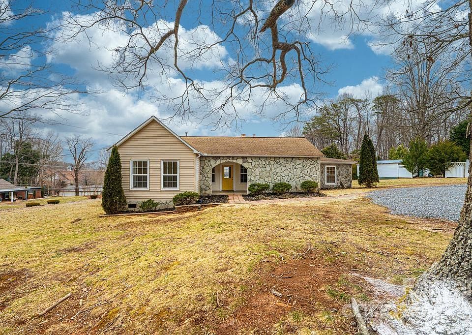 "Living made easy" is the tag line for Maiden, NC. And this newly renovated home located within a mile of downtown Maiden will make your life easier too! Located in southern Catawba County, this large corner lot (0.77 acre) with a beautiful oak tree and nice circular driveway welcomes you home. Front porch leads into a nice living room with a fireplace and hardwood floors. Brand new carpet in the primary bedroom! Wait till you see the primary bath - very spacious, new designer tile floors, new vanity and toilet. Kitchen also has brand new stainless steel appliances and upgraded cabinets. Laundry room is off of the kitchen. Split bedroom floor plan is the perfect layout for privacy and quiet. Primary bedroom is to the right when you come in. Two other bedrooms are to the left upon entering the home. Come for a visit. Hang out on the porch and take it easy!