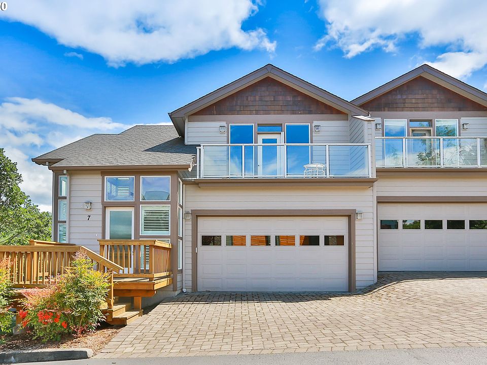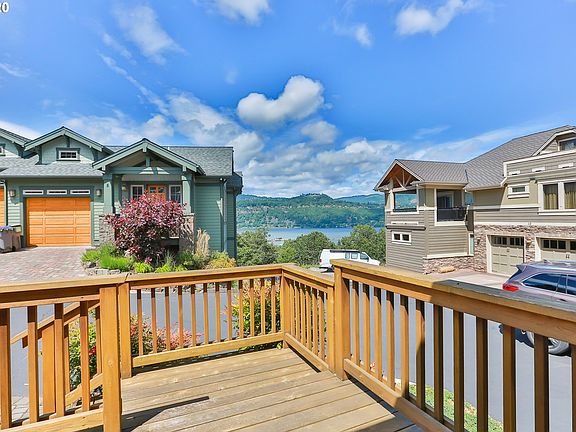 Townhouse w/ Double River View! YES both the Hood River & Columbia River so you know it's a great location. Live directly above downtown so close to the Stairs, the Heights and the Indian Creek Trailhead. Open floorplan on two levels w/main level master suite, half bath, kitchen w/granite island, stainless appliances & pantry, LR w/gas fireplace & S facing deck; upper level has 2 bedrooms, bath, family room & N facing deck.Lots of windows w/ plantation shutters. True 2 car garage. Solar Panels.