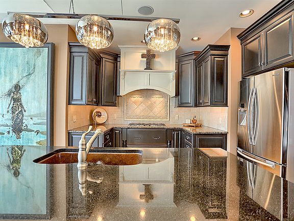 Luxury & style abound in this well appointed home. Maple wood floors grace most of the 1st floor living space. The 2-story Great Rm is breathtaking with abundant daylight, decorative coffered ceiling & tiled fp wall with stainless mantle. 1st floor Master BR affords 2 WICs & a spa-like bath complete with open concept tiled shower. The finished LL has a full bath, Fam Rm w/new flooring and game/exercise room with recessed lighting, sink, wine rack, & DW. Don't miss the outdoor private retreat w/ waterfall!
