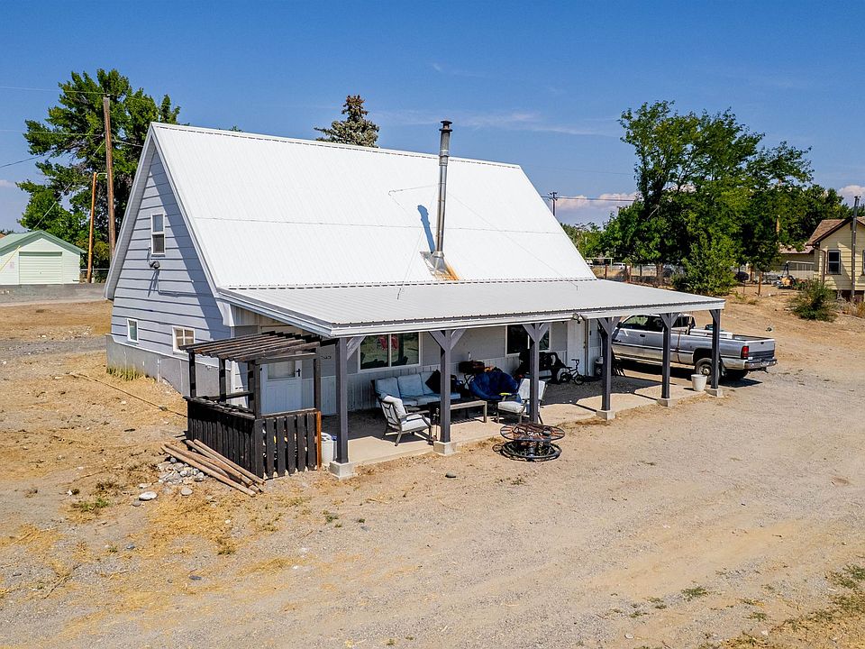 Discover this charming A-Frame home offering stunning views of the Shoshone River in Byron. This ideally situated 3-bedroom, 2-bathroom residence features an open floor plan and a modern kitchen equipped with stainless steel appliances. Step outside to a spacious covered patio overlooking the scenic river—perfect for relaxing and entertaining while soaking in the breathtaking surroundings. Additionally, the property includes a versatile 4-bay storage shed, ideal for additional income opportunities or a dedicated workshop. Don't miss the chance to own this picturesque retreat!