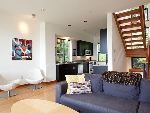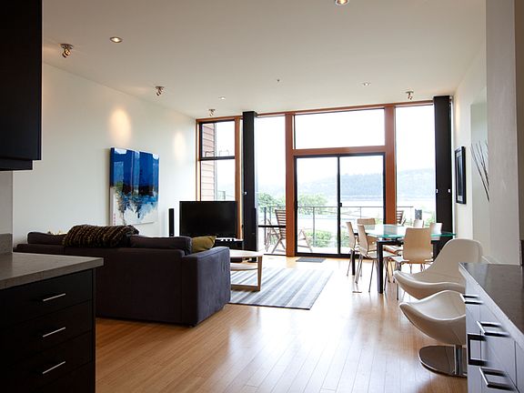 Experience the allure of a luscious contemporary downtown loft in Hood River, spanning three stories with spectacular river views from every level. This airy and light-filled apartment features huge windows, two decks, and a sunny east-side location, making it the perfect spot to survey the kites and sails of the Columbia. With bamboo floors, beautiful bathrooms, stainless steel appliances, and an open-plan layout, you'll feel at home in this modern oasis. Enjoy your morning coffee on the sunny back patio or store your vehicle and gear in the garage. All modern conveniences, including air conditioning, Wi-Fi, a flat-screen TV, and a DVD player, are included. Just a two-minute stroll to downtown, this apartment offers both convenience and comfort. The apartment is designed with modern conveniences and an open-plan layout, featuring bamboo floors, beautiful bathrooms, and stainless steel appliances. Enjoy the airy and light-filled space with huge windows and two decks that offer spectacular river views from all levels. The sunny back patio is perfect for morning coffee, and the garage provides storage for your vehicle and gear. Located in the heart of Hood River, this apartment is just a two-minute stroll to downtown, where historic buildings line the beautifully scenic streets. Explore a bustling shopping district with boutiques, designer shops, outdoor adventure gear outfitters, antique shops, art galleries, and over 30 restaurants. The Columbia River Gorge offers opportunities for windsurfing, mountain biking, kayaking, golfing, skiing, hiking, and fishing. The Hood River Valley is renowned for its luscious apples, pears, cherries, peaches, and other fruits, as well as the majestic snowcapped peak of Mt. Hood. Visit the award-winning Hood River Vineyards for traditional wines and fruit liqueurs. This is a no-smoking building, and smoking is prohibited inside or outside, including on decks and the driveway. The apartment requires a 30-day minimum stay.