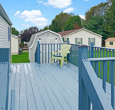 This one won't last long! Beautifully kept 2 bedroom "Washington Model" home in the 55+ community of Country View Village. This home has been impeccably cared for inside and out and it shows! Outside you have a new roof, the deck has been freshly painted, and the house has been completely power washed. Inside there are new windows in the dining and living room area. Also new are the refrigerator, water heater, dryer, skylight and storm door. There are 2 bathrooms with newer toilets. This home offers an open floor plan with new floors in the kitchen, dining and living room area. The utility room, complete with washer and dryer, has a door that leads to the back deck. The monthly ground lease includes sewer, water, taxes, lawn, garbage as well as the pool and clubhouse.