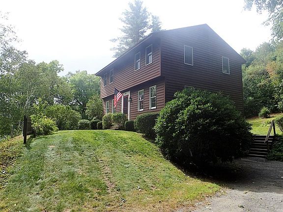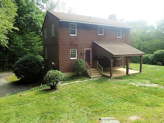 Perched on a bluff above the road is this seven room four bedroom bath and a half colonial built in 1970. One owner and lovingly maintained. First floor offers a front to back living room with fireplace and new carpeting, formal dining room, kitchen and half bath. Second floor offers four bedrooms all with original oak hardwood, ample closets and full bath. The basement is divided up into four rooms: single car garage, storage room, former family room and the laundry. New leach tanks are being installed to bring septic system into compliance. You will love the privacy of the elevated site, especially the covered deck.