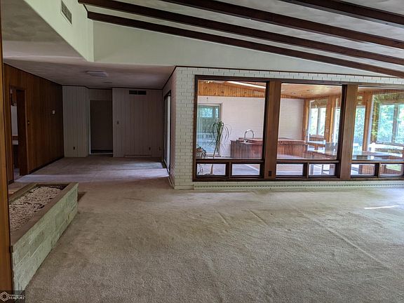 Beautiful secluded wooded acreage in town. This sprawling ranch is located at the end of a cul-de-sac off Sunnyside. HUGE living room w/ fireplace & exta built-in shelves. Dining room plus an out of the way office w/ extra built in shelving. Large updated kitchen, appliances to remain including washer/dryer in main floor laundry rm. Cedar closets in all bedrms. Updated full bath (2019). Owner's suite has 2 closets, updated bath (2019) & entry to the 4 season sunrm w/ hot tub. The sunrm has loads of potential for sitting areas to enjoy the outdoors without the heat, humidity & bugs. There is walkout door to the back patio for those who do enjoy sitting in the outdoors (great spot for the firepit). Partial basement has a game/billard rm & the mechanical rm house the new GFA/CA (2020), sump pump, water heater & electrical panel. The roof was pitched & a new membrane put on by the previous owner (age unk).. Most windows new (2019). 3.21 m/l acre lot. Attached 2 car garage.