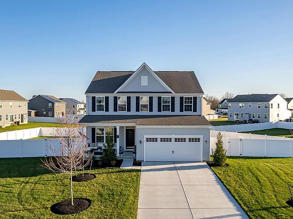 This newly constructed, stunning 5 Bedroom, 3.5 Bath with an office is just waiting for its new family! Current owners love the home and neighborhood, but let their work relocation be your gain! As you enter from the fully-covered front porch, you are greeted with neutral colors and chic yet durable luxury vinyl hardwood floors throughout the entire main floor. The office is currently used as a playroom and has a large window and beautiful glass french doors. Down the hallway into the living space, the floor plan opens up into the kitchen and living room - an entertaining dream! The living room has a cozy gas fireplace and a ton of natural light. The kitchen has a massive 10’ island! The kitchen features stainless steel appliances, built-in microwave, dishwasher, an abundance of sleek white soft close cabinets and quartz countertops. The cabinets are extremely functional with a mix of pull-out and adjustable shelves. The entire house has matte black craftsman-style hardware and trim finishes. A family entry area off the kitchen has access to a large pantry, coat closet, and a powder room. It is also the entry point from the garage, making unloading groceries a breeze! Upstairs, you will find 4 bedrooms and 2 full baths. The laundry room is conveniently located next to the bedrooms. The master suite is a true retreat! It boasts a huge walk-in closet, sitting area, and a large bathroom with double sinks and walk-in shower with a seat. The basement is beautifully finished with plush carpet and bright lighting. It also has a large unfinished utility area with plenty of room for storage. The basement includes a spacious family room, 5th bedroom (with egress window) and a full bath with shower. Great for an in-law suite or allowing guests some privacy from the rest of the house. Enjoy the upcoming warmer days on the covered back porch accessed from the beautiful sliding door off the kitchen. The porch has built in lighting and is wired for an outdoor fan should you want to add one! The backyard is fully fenced with 6ft. white vinyl privacy fence. The yard is ready for your customization to make it your own! Conveniently located close to the Town & Country golf course, you can walk over to the course’s Creekside Inn restaurant, the ice cream shop, library, and even Main Street Woodstown! Come check out this gorgeous home in an amazing neighborhood. Set up your private showing today!