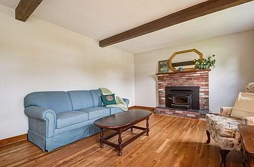 - Liv Dscrp: Fireplace, Flooring - Hardwood, Main Level, Ceiling - Beamed