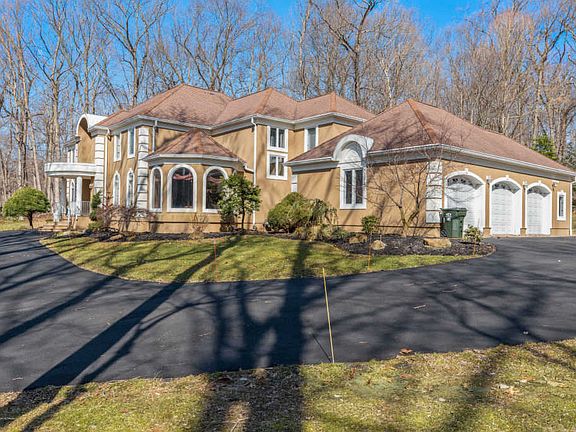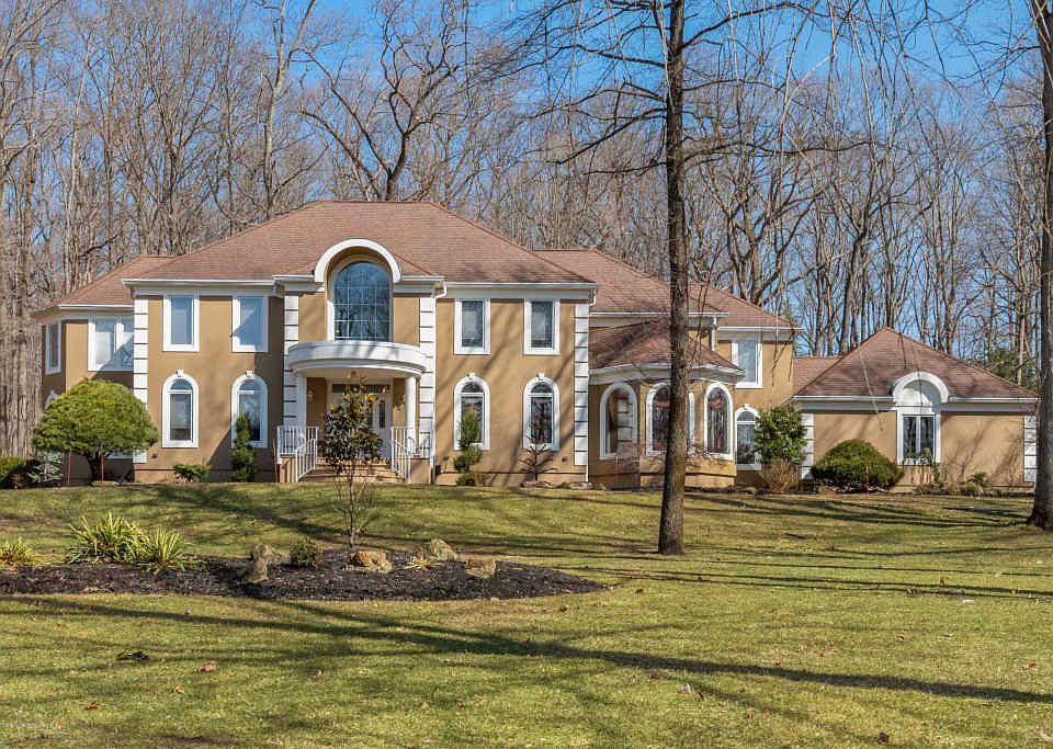 Magnificent custom country estate located in the gem of Monmouth County, Millstone Township. This stunning 5 bedroom, 4.5 bath home is situated on 2.58 acres on a quiet cul-de-sac. Featuring custom architectural details, the fluid, open floor plan is perfection for everyday living as well as entertaining. Grand 2 story entrance foyer with floating staircase invites you into a 2 story Great Room with wood burning fireplace and wet bar open to Gourmet kitchen. Enjoy granite counters, 42 inch cabinetry, stainless steel appliances and cooktop on the center island. Sunlit breakfast area back dropped by natural scenery is perfection. Formal Living Room and Dining Room are exquisite and perfect for entertaining.