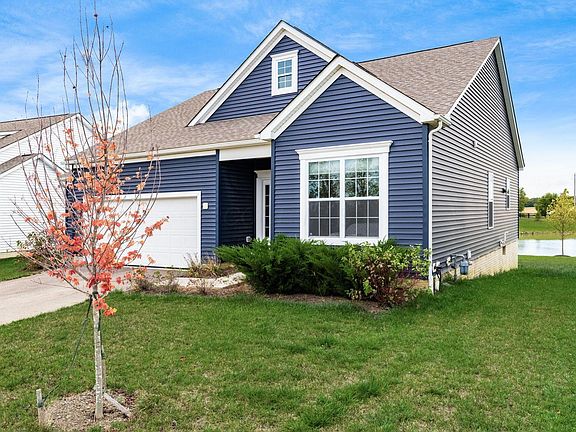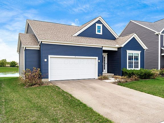 Look at this beautiful home built in 2022!! This home features 3 bedrooms plus a flexible room that can serve as an additional bedroom or office. The open floor plan is filled with natural light and includes a bump-out dining nook, stainless steel appliances, and views of the pond from your backyard patio! The owner's suite offers a tray ceiling, double vanity, and deluxe walk-in shower. A full unfinished basement which provides the potential to add up to 1,700 sq. ft. of living space! The Neighborhood amenities include a pool, playground, and a covered pavilion—all conveniently located near dining, entertainment, shopping and a 20 min drive to downtown Columbus!