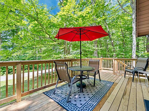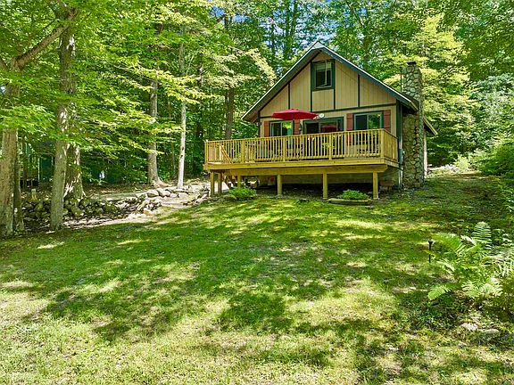 Discover this delightful chalet-style home nestled in the serene Hidden Valley Association of Tuftonboro. This turnkey property features 3 bedrooms, including a primary bedroom on the first floor. The main level also offers an inviting kitchen and dining area, a cozy living room with a wood-burning stove, and sliding glass doors that open to a brand-new 22-foot deck - perfect for enjoying the tranquil surroundings. In the back, a patio framed by a picturesque stone wall creates an ideal space for grilling and entertaining guests. Upstairs, you'll find two generously-sized bedrooms, providing plenty of space for family or guests. The home has been well-maintained and offers some notable special improvements including a new roof installed in July 2024 and a new furnace added in May 2024. Living in Hidden Valley offers access to two pristine beaches, tennis courts, and opportunities for canoeing, kayaking, fishing, and swimming on Lower Beach Pond. Winter activities such as snowshoeing, cross-country skiing, and ice fishing are also at your doorstep. Conveniently located just a short drive from downtown Wolfeboro and Lake Winnipesaukee, and only a little over two hours from Boston, this home is the perfect blend of peaceful living and accessibility. Open House: Saturday, August 17th, 11:00 AM - 1:00 PM
