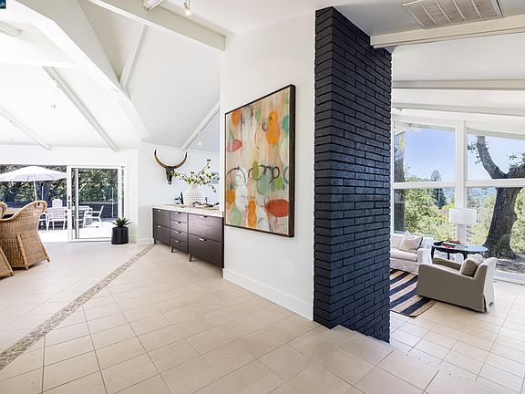 One look at the architectural detailing and gorgeous amenities from custom Italian cabinetry and imported ceramic tile to walnut hdwd floors and walls of windows will leave you breathless at this spectacular single-level home tucked in the hills of Orinda. The ultra-private cul-de-sac setting among towering oaks offers optimal southern exposure and hillside views. It is also conveniently close to downtown Orinda and Moraga, and has easy access to BART, Hwy 24, and top-rated schools in the Orinda and Acalanes school districts. Celebrate California’s quintessential indoor/outdoor lifestyle and slide open walls of windows to fabulous outdoor spaces primed to create the ultimate outdoor entertaining mecca and backyard sanctuary on its generous .65-acre corner lot. Dramatic uplighting illuminates the oaks, partially shading the yard. A gated front yard with new sod and bordering foliage offers even more private garden venues. Enjoy an open concept design featuring soaring vaulted ceilings, multiple skylights, a built-in speaker system, a true Chef's kitchen with professional appliances, many skylights, living room with 24' of window & 15' vaulted ceiling, Italian ceramic tile floor, Andersen slider, primary suite with spa-inspired bath, indoor laundry room.