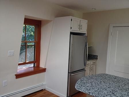 Tastefully renovated 1 BR 1BA Ideal chef's kitchen (tons of counter space: granite, stainless steel appliances, gas stove, hood vent Amazing open layout Breakfast bar opens to large living room Sun filled with plenty of windows (many not pictured) & incredible skylight (pics do not do this apartment justice) Gleaming hardwood floors throughout Super large deck! Full sized laundry in unit tucked out of the way in the closet. Gas heat (responsibility of resident) Convenient & charming Sumner Hill location: 2 blocks from Green Street Station & only 4 blocks to Centre Street : Move in costs = 1st month rent, 1 month security deposit & 1 month broker fee. No pets Utilities are not included in the rent. First month rent, security deposit and one month rent broker fee. NO pets, no smoking