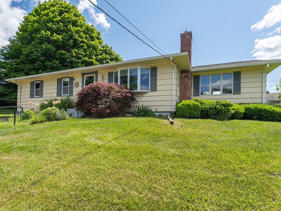 Embrace easy one-level living at 7 Evergreen Dr in the quaint, quiet neighborhood known as Deerfield Hills! This charming, freshly painted ranch-style home on a corner lot features an inviting living room with a cozy fireplace and bay window, plus a spacious kitchen. Down the hall, you'll find a full bath, a primary bedroom with an en-suite bath, and two versatile bedrooms. The family room, complete with a wood-burning stove and picture window, has sliding doors leading to a screened-in porch, perfect for relaxation. The unfinished basement offers ample storage or future living space. Sitting on .47 acres, this North Branford gem is close to schools, shopping, dining, and trails. Book a tour today and fall in love with 7 Evergreen Dr! This home is being sold As-Is