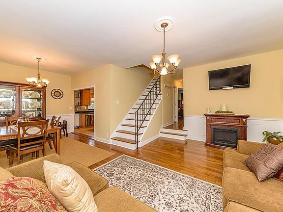 This split level home is in a beautiful area & has lots of great features. Upon entry notice the shining hard wood floors, decorative molding & elegant light fixtures. The living/dining combo make for a spacious & open floor plan. Recessed lighting, shimmering back splash & oak cabinets are featured throughout the kitchen. 1 full bath and 3 bedrooms are also housed here on the lower level. The master bedroom includes a half bath with a modern and chic basin vanity. The upper level features a 4th bedroom with cathedral ceilings and an additional area, great for use of a WIC! Full finished basement, laundry shoot, attached garage, newer roof, and so much more! Make your way to the rear of the home and you will be captivated by the covered deck with views of the spacious backyard and fire pit! Don't miss out on this opportunity, make this home yours today!