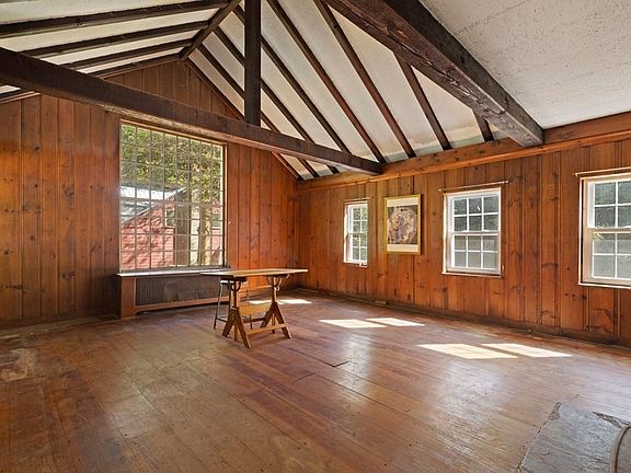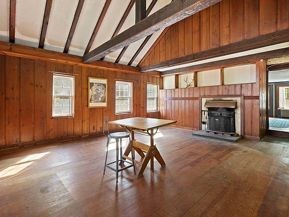 Once the home of a famous local artist and muralist, this unique, brick, house oozes with charm and historical detail. The spacious living room with cathedral ceilings, large northern window and wide pine floors was first envisioned as an artist studio. The unique layout adds to its character. Along with the studio/living room, there is a first-floor bedroom. The lower level has a kitchen with stone floors, a recently remodeled bath, a sitting room/dining room with an antique paneled wall and the second bedroom. There is a walk-up attic for storage, a newer boiler plus a one car garage with a second floor studio space. Some renovation is needed but this has the potential to be an amazing property.. Open House Sunday 10/9, from 11:00 a.m. to 1:00 p.m. All offers in by Tuesday, 10/11 at 5:00 P.M.