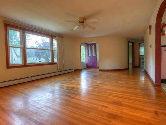Secluded ranch on beautiful oversized lot. Located on a side street close to shopping, commuter routes, dining and medical facilities this well maintained ranch features low maintenance siding, updated windows, updated electrical, updated furnace and an amazing 60 year roof. The interior features 3 bedrooms, walk up attic and full height basement. Multiple outbuildings for storage. Cosmetic Kitchen and bath updates are well worth it as the floor plan is excellent. The 5.64 acre parcel is level and very workable. Property has been surveyed. Town water, sewer.